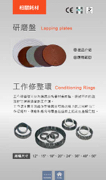 研磨盤 Lapping plates 工作修整環 Conditioning Rings 工作修整環可分為鑄鐵及陶瓷材質兩種,針對不同的盤 面材質選用適當的工作環。 工作環主要目的能修整盤面並可將磨盤上的磨料藉由工 作環運轉,使磨料能均勻覆蓋在盤面上提高生產穩定性。 規格尺寸 、 、 、 、 、 、 、 Contents HOME 相關耗材